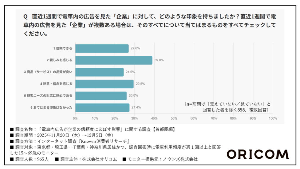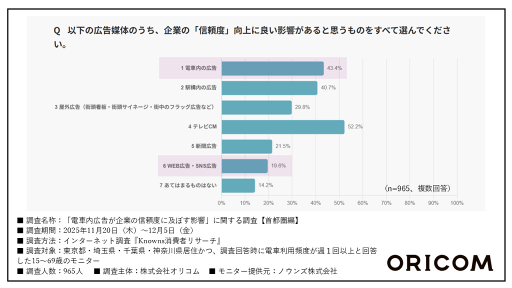 「出典:株式会社オリコム『「電車内広告が企業の信頼度に及ぼす影響」に関する調査【首都圏編】』2025年11月~12月」
