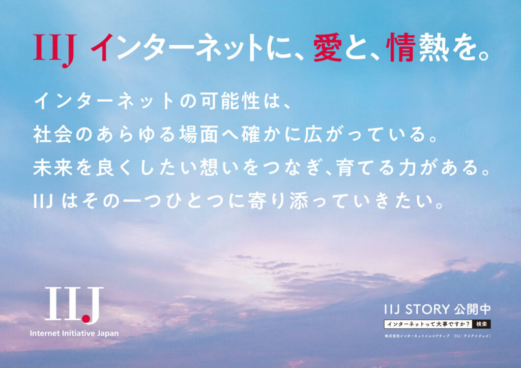 『社会インフラであるインターネットを支えることに対するIIJの想い』を伝えるために生まれたコピーが【(I)インターネットに、(I)愛と、(J)情熱を。】です。