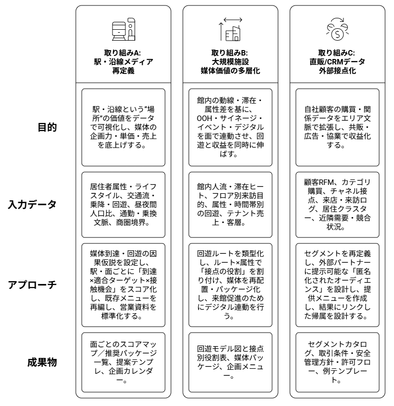 エリア特性で数値化し、デジタルと同じ物差しで比較・評価可能にする。