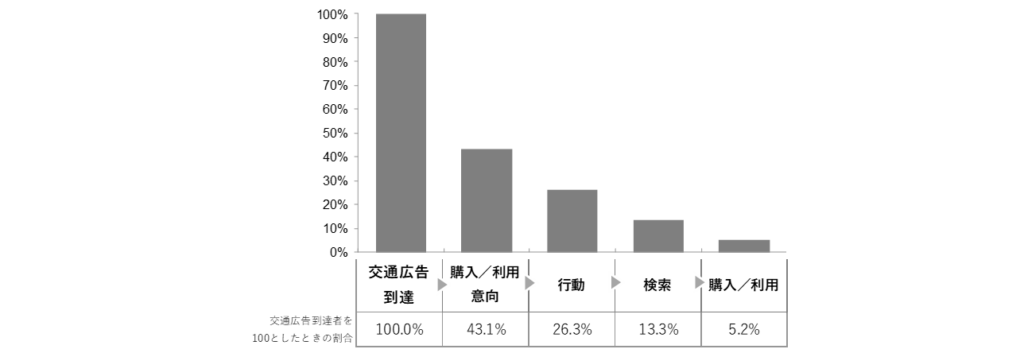 交通広告のリーチだけでなく、認知後のアクションやクリエイティブ評価などのノーム値と比較し、適正な評価を行います。