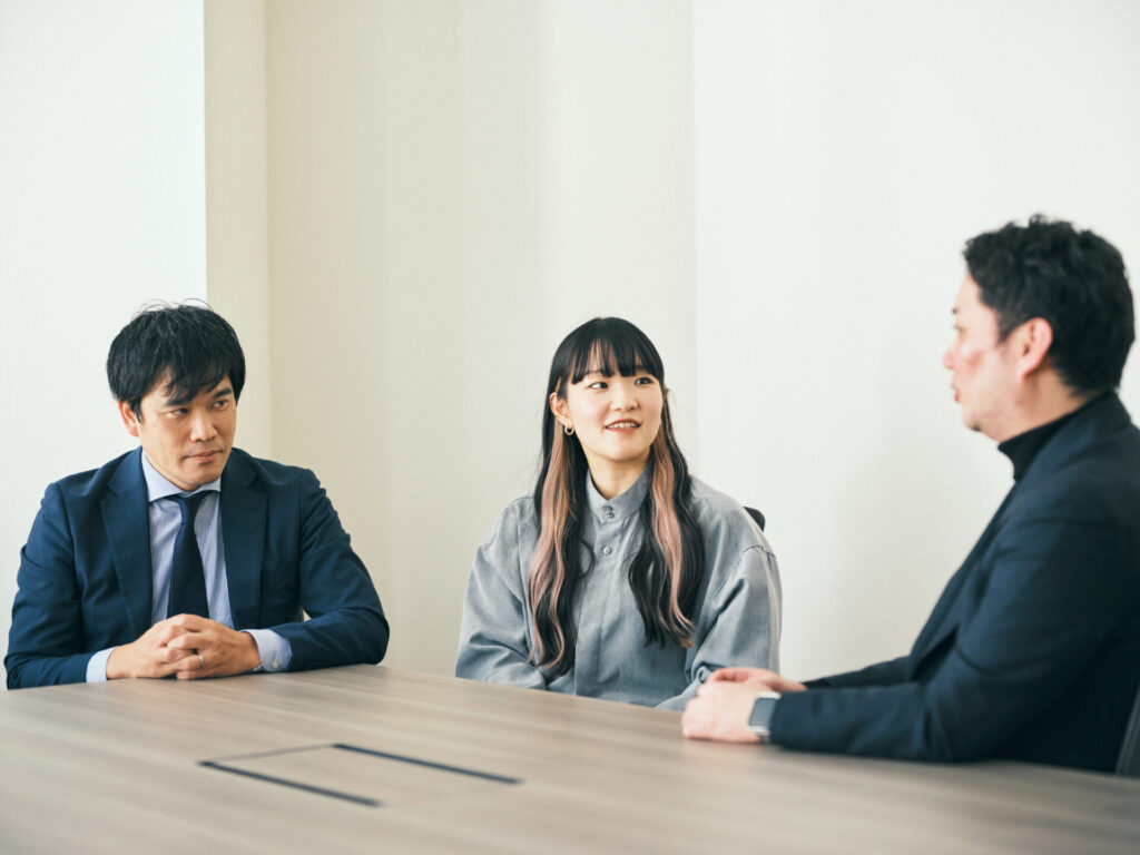 2週間に1回、全支社で定例会を開いています。ここにいる3人だけじゃなくて、全国の支社メンバー、計25人ほど参加するんです。1回あたり1時間で、1〜2人が担当案件やコンペの成果、企画書などを守秘義務に影響がない範囲で発表して、事務連絡も共有しています。人となりを知ることもできるので案件時のスムーズなやりとりにもつながっています。